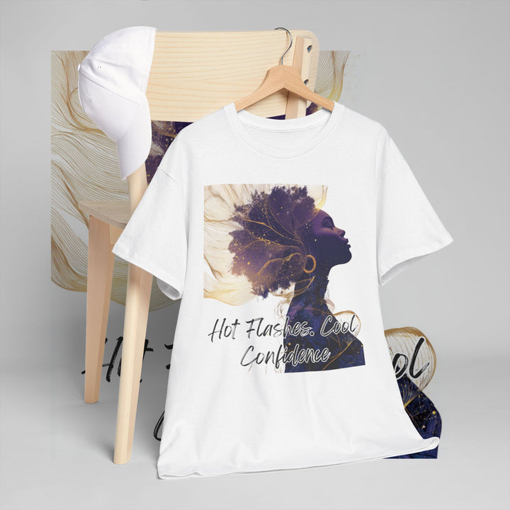 Hot Fashes, Cool Confidence Moving through Menopause with style. This T-Shirt is perfect for women going through menopause who want to feel confident and stylish. It's a great addition to any wardrobe and can be worn casually or dressed up for any occasion. Perfect for celebrating International Menopause Day.